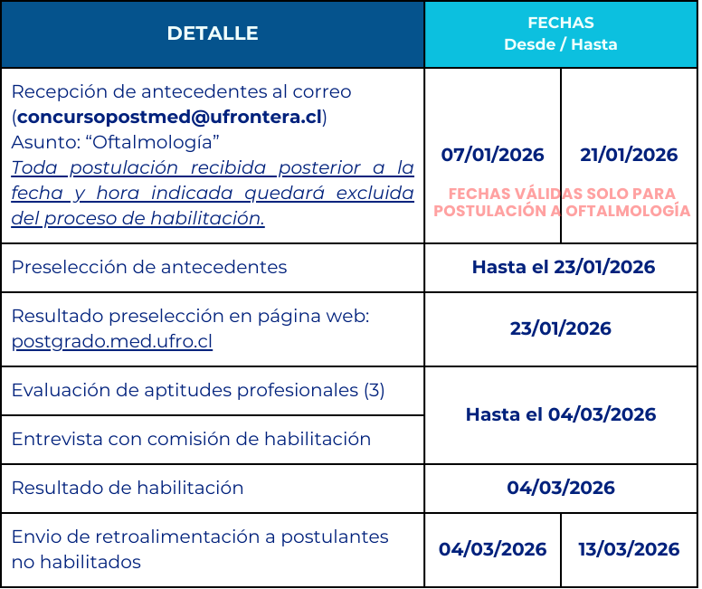 CRONOGRAMA CONISS CONCURSO EXTRAORDINARIO OFTALMOLOGÍA ingreso 2026